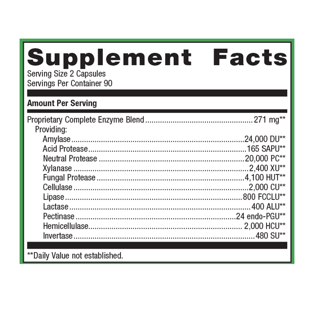 SpectraZyme Complete provides digestive support with a non-GMO, broad spectrum of non-animal derived enzymes including acid stable lipase and three proteases that function in different pH ranges. This comprehensive enzyme complex is designed to support the healthy digestion of proteins, peptides, carbohydrates, fats, cellulose, maltose, lactose, and sucrose.