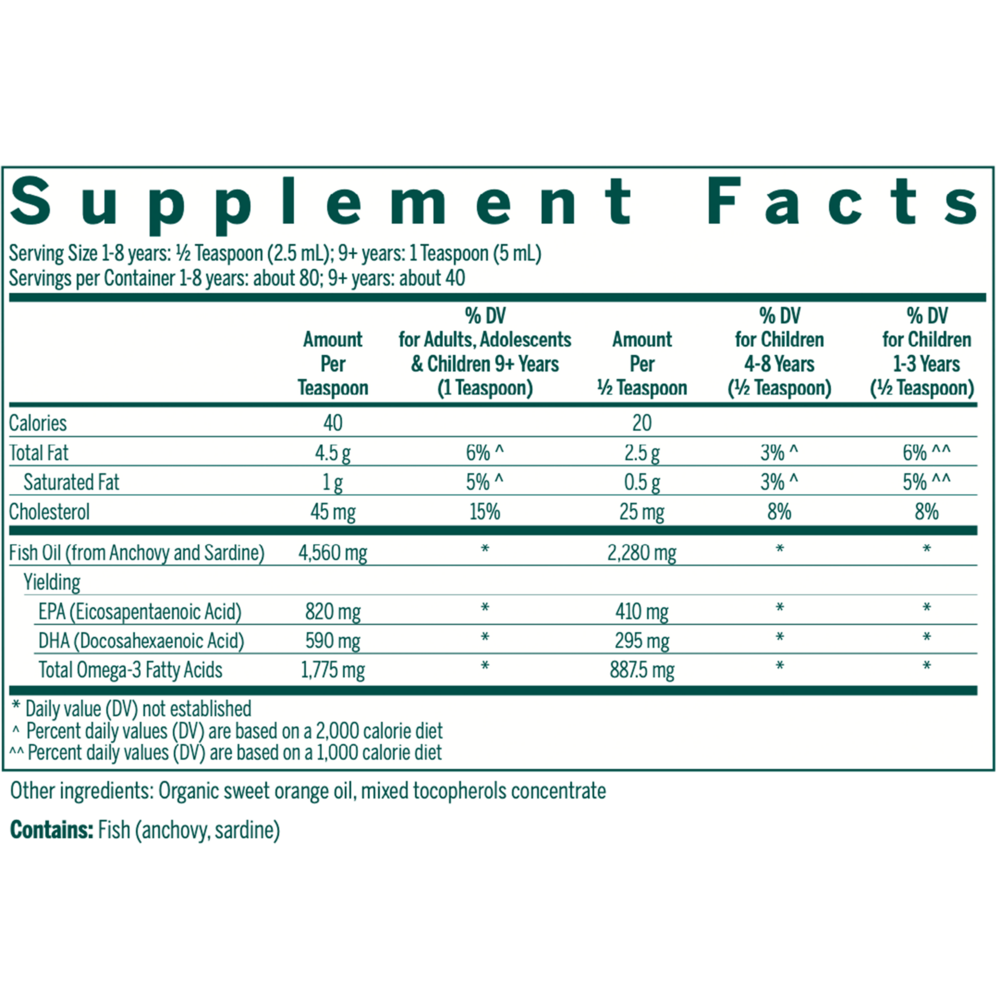 Children (1-8 years): Take ½ teaspoon daily with a meal or as recommended by your healthcare practitioner.