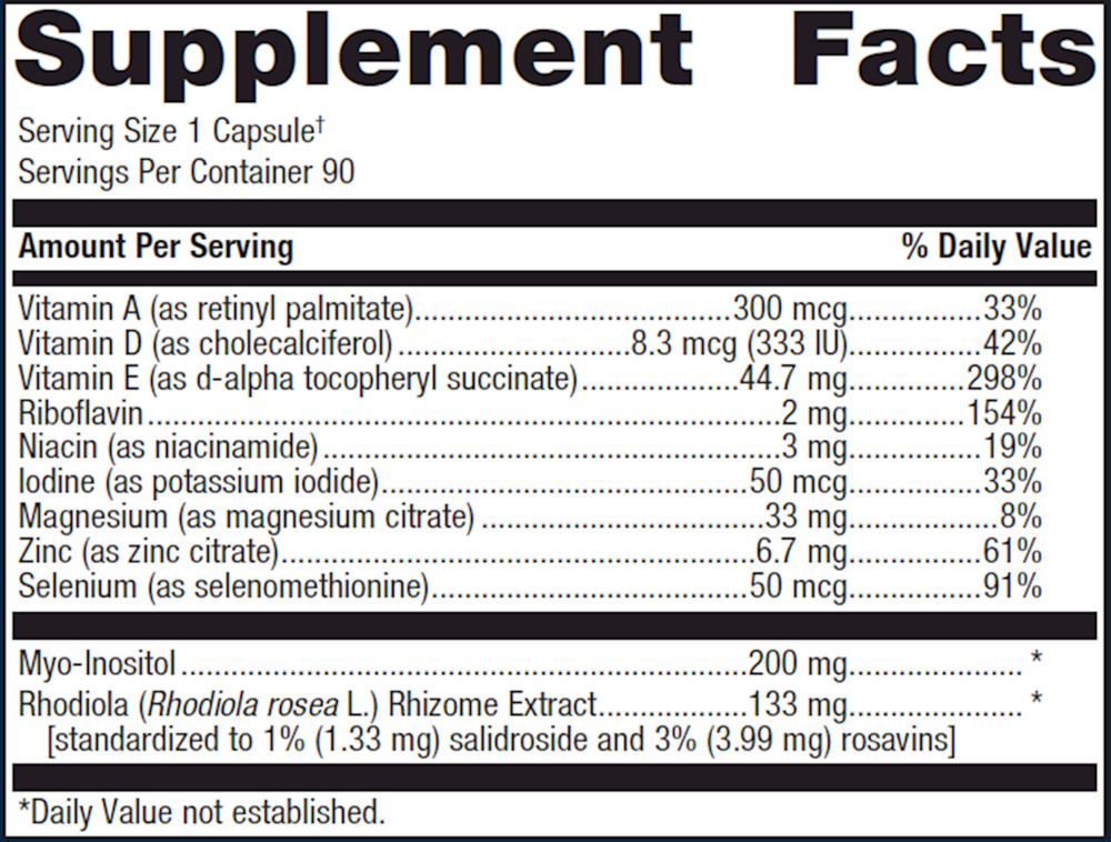 (Rhodiola rosea L.) Rhizome Extract [standardized to 1% (1.33 mg) salidroside and 3% (3.99 mg) rosavins]