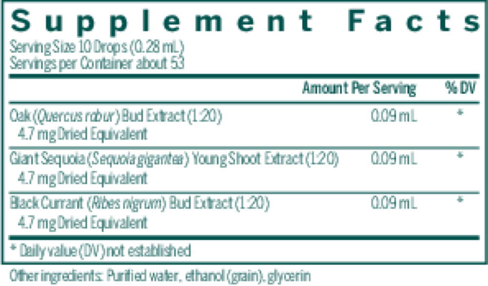 Oak (Quercus robur) Bud Extract (1:20) 4.7 mg Dried Equivalent 0.09 ml