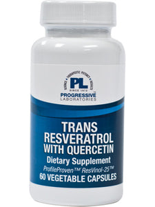 $48.00This is a specially developed formula of Trans-Resveratrol that consists of several quality sources of this natural ingredient. Resveratrol contains two isomers, cis-resveratrol and trans-resveratrol. Trans-resveratrol is the active form. No benefits have been associated with cis-resveratrol. By combining the best extracts of grape skins, red wine and Japanese knotweed, Progressive Laboratories has created a well-rounded product to support the nutritional needs of healthy aging.* Resveratrol occurs naturally in plants along with other polyphenols such as quercetin. Quercetin may enhance resveratrol’s bioavailability.