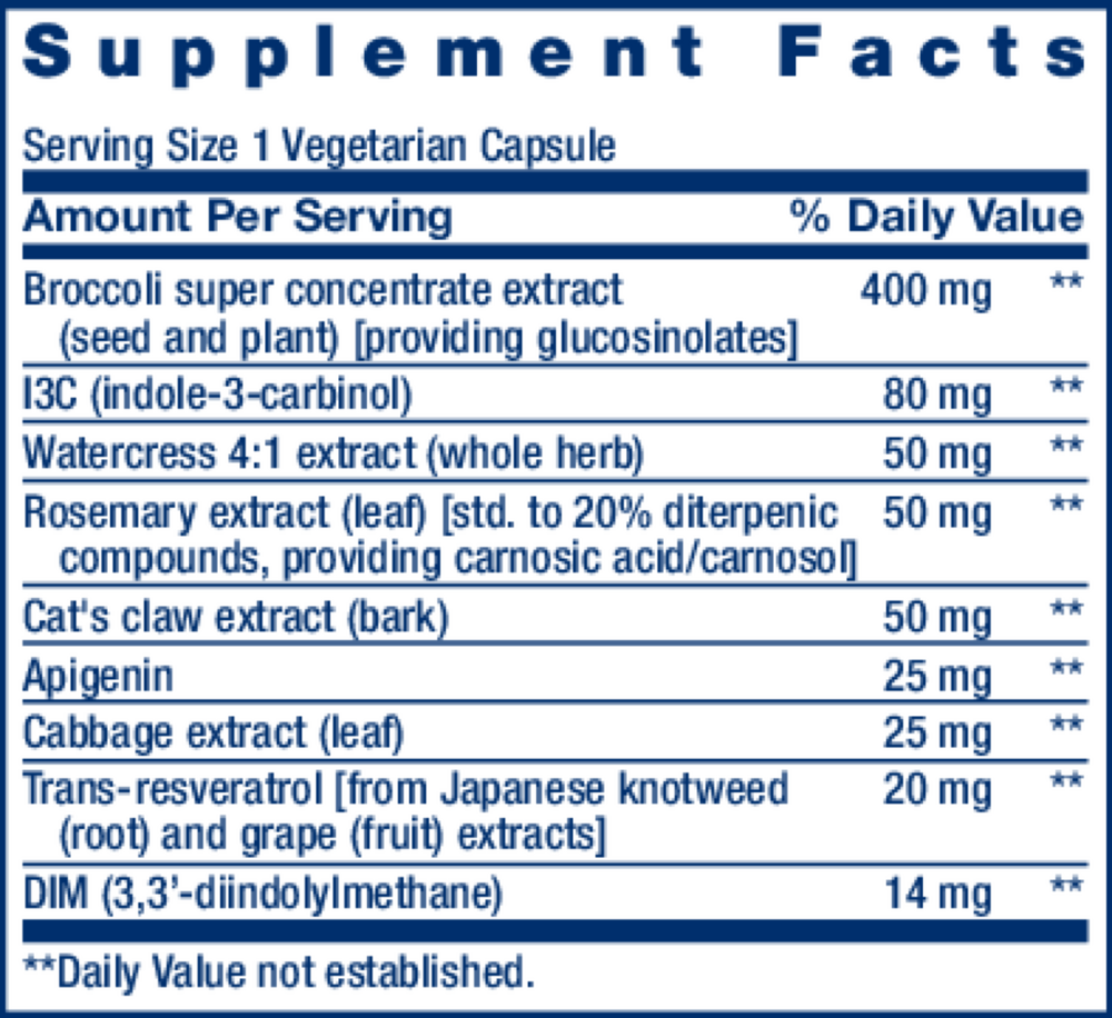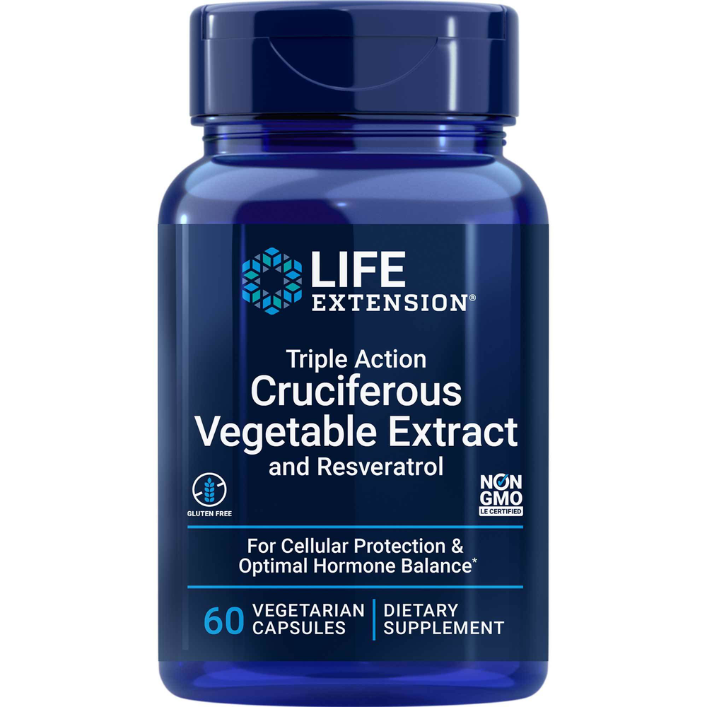 Triple Action Cruciferous Vegetable Extract with Resveratrol combines extracts of cruciferous vegetables into a comprehensive food-based formula to promote cell protection and help maintain healthy hormone balance.