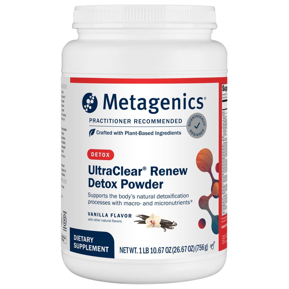 UltraClear RENEW is formulated to deliver advanced, specialized nutritional support for Phase I, II, and III detoxification, with enhanced support for the body's natural alkalinization and heavy metal metabolism processes. Formulated in a base of 14.5 g OptiProtein—12 g of proprietary, vegan pea/rice protein and 2.5 g of added amino acids—this novel formula features xanthohumol as XNT ProMatrix, broccoli sprout and floret powder as Brassinase, and prune and pomegranate extracts to promote healthy cellular activities. UltraClear RENEW also features glycine and magnesium sulfate to support Phase II detoxification activities, along with N-acetyl-L-cysteine, green tea catechins, and beta-carotene and vitamins C and E to provide antioxidant support.
