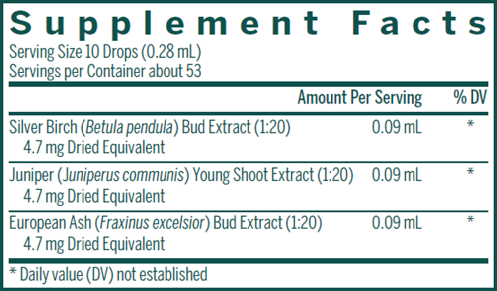 Silver Birch (Betula pendula) Bud Extract (1:20) 4.7 mg Dried Equivalent0.09 ml