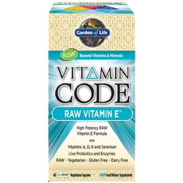 Vitamin Code Raw Vitamin E—high-potency RAW vitamin E formula with vitamins A, D, K and selenium, blended in a base of 23 fruits and vegetables with live probiotics and enzymes.